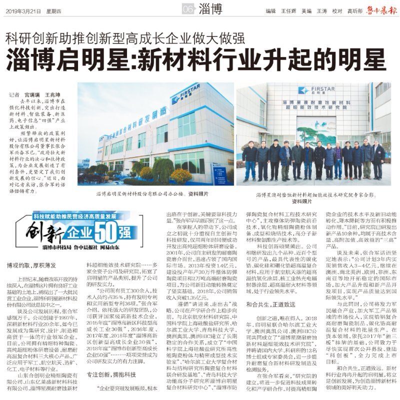 于秀栋局长对淄博启明星“科技为本”的发展理念给予了充分肯定,对公司成功引进全国大院大所大校专家成立研究院的做法表示赞赏。于局长指出,创新驱动发展,科研能力代表发展潜力。鼓励启明星要再接再厉,锁定主业,进一步加大引进人才及科研攻关力度,继续以科技创新为引领,掌握核心技术,形成拳头产品,铸造先进陶瓷行业领军品牌,促进科技创新和成果转化再上新台阶。于局长表示,市科技局将在政策扶持、科技合作、人才引进和平台建设等方面继续予以支持,助推企业高质量快速发展,打造淄博科技发展新亮点。