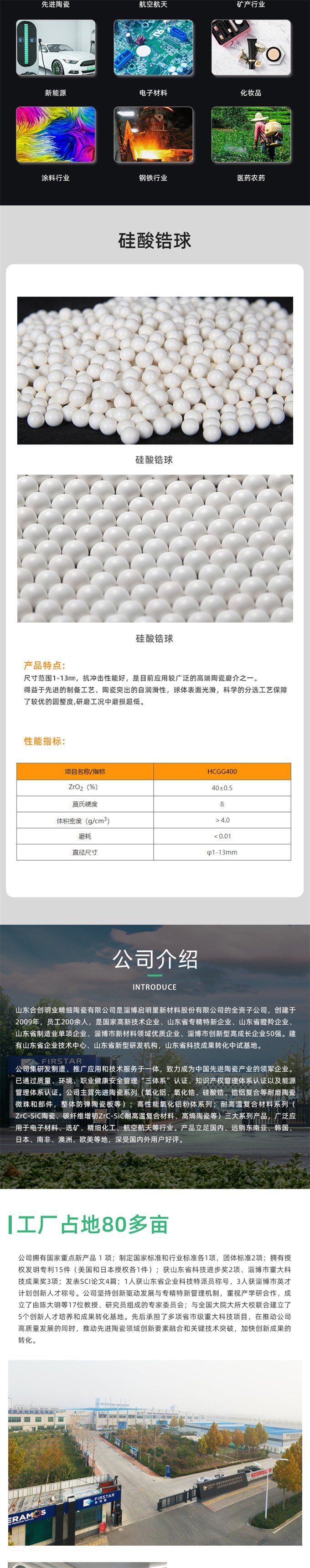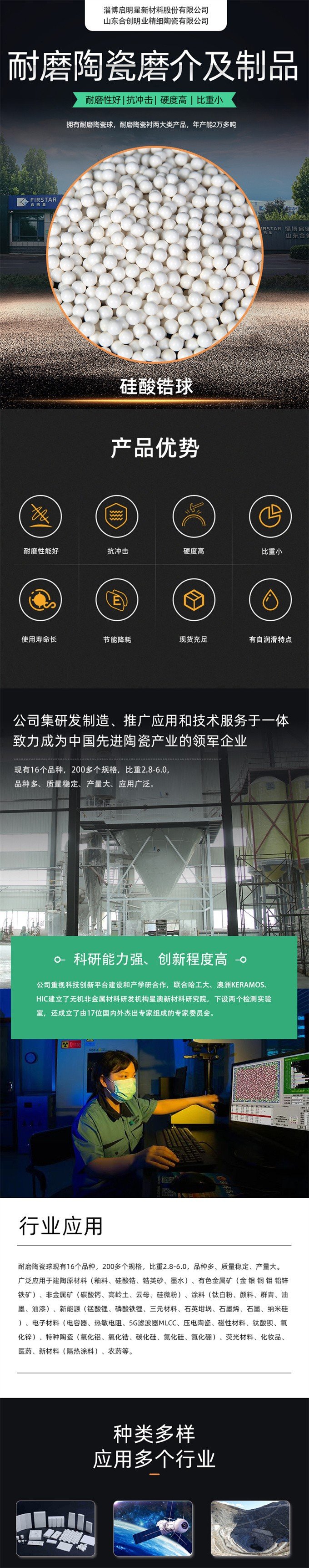 尺寸范围1-13mm,抗冲击性能好,是目前应用较广泛的高端陶瓷磨介之一。